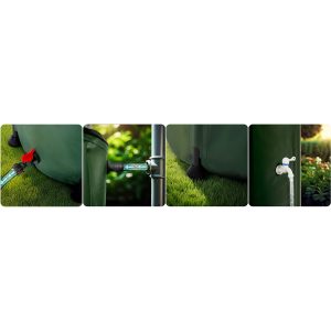 До збірника легко підключити садовий шланг, що дозволяє зручно поливати грядки, газон чи рослини в теплиці. Таким чином, дощова вода стає доступною на всьому саду, економлячи час і зусилля.