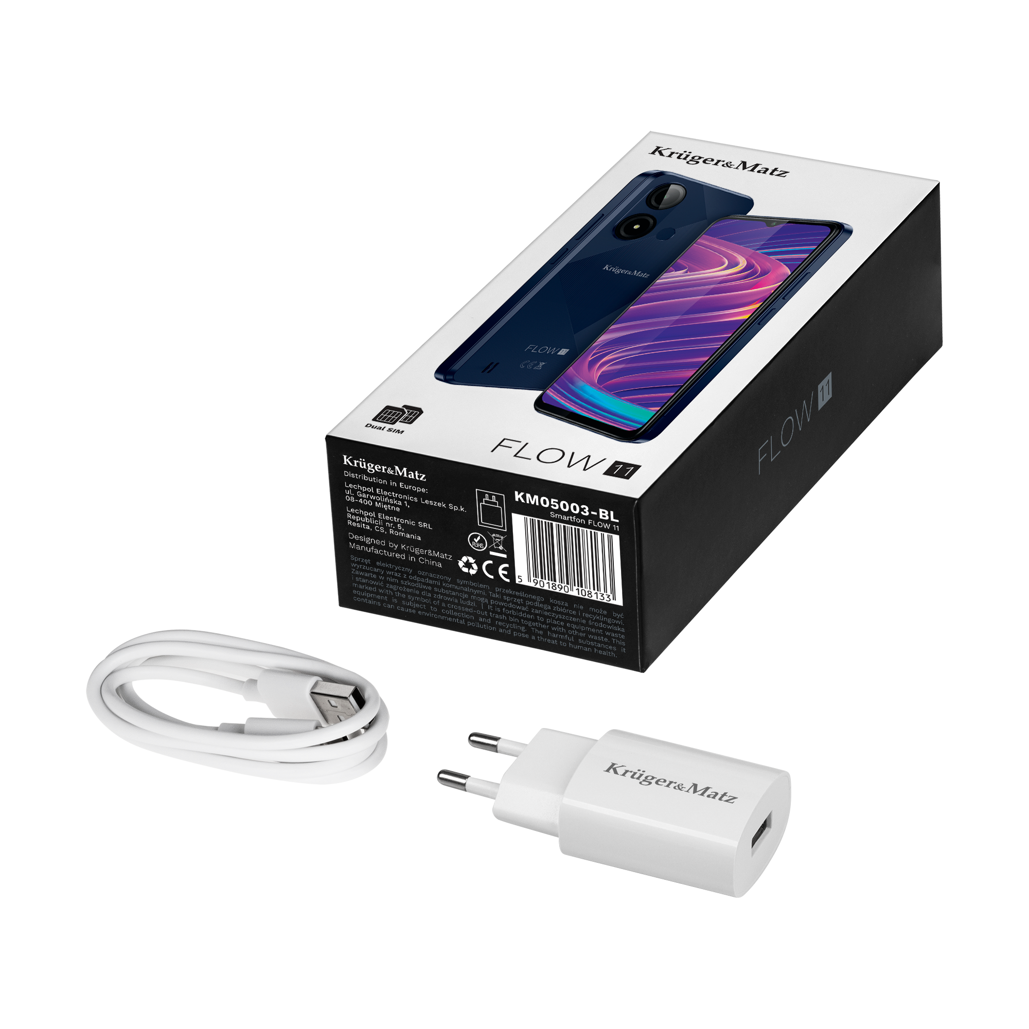 Kruger&Matz FLOW 11 оснащений 6,56-дюймовим екраном з роздільною здатністю HD+. Використані параметри гарантують, що ця модель забезпечить вам високий рівень комфорту, як під час перегляду веб-сайтів, так і використання різноманітних додатків.