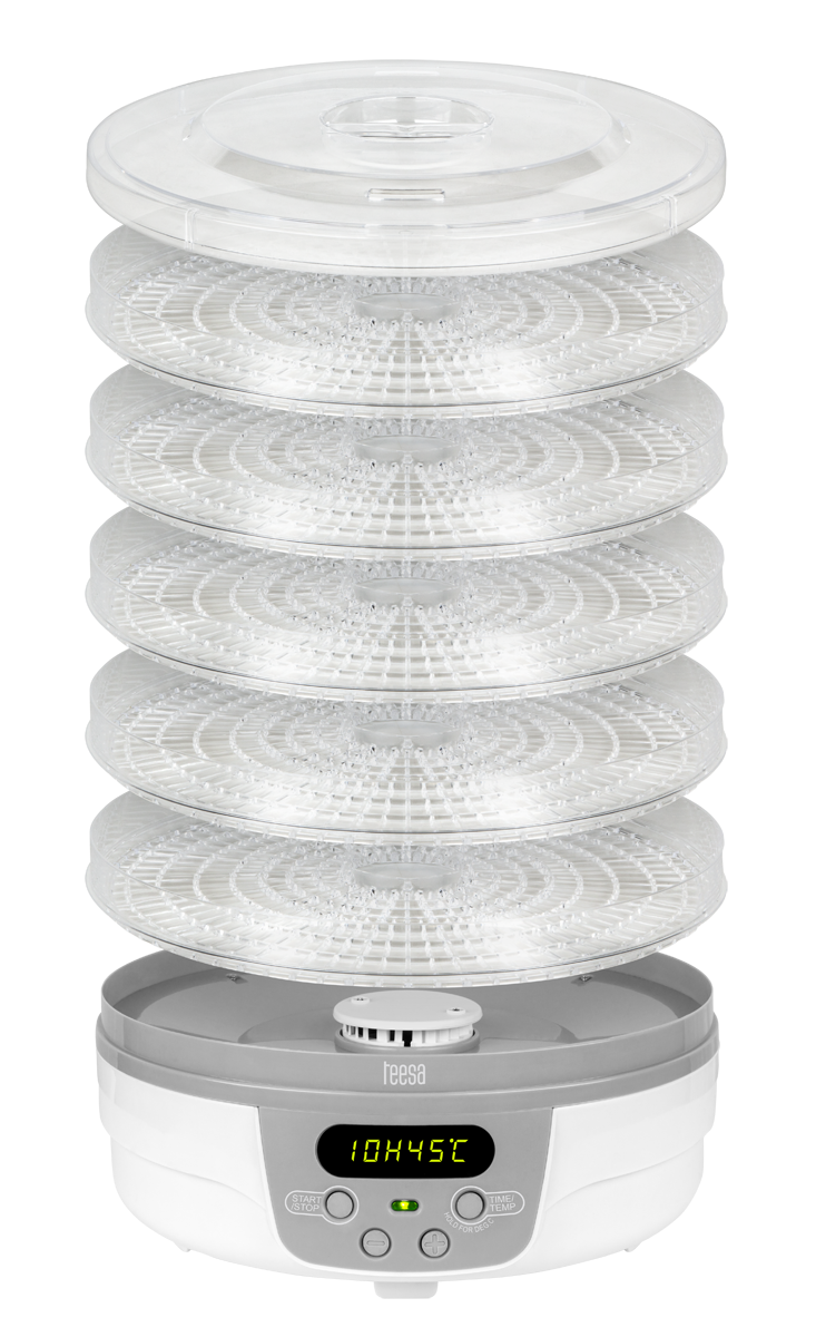 Сушарка TSA3031 оснащена п’ятьма ситами діаметром 32 см, які дозволять висушити до 5 кілограмів продуктів. Тепер, незалежно від пори року, ви можете отримати порцію натуральних вітамінів або здивувати друзів корисним перекусом під час зустрічей.