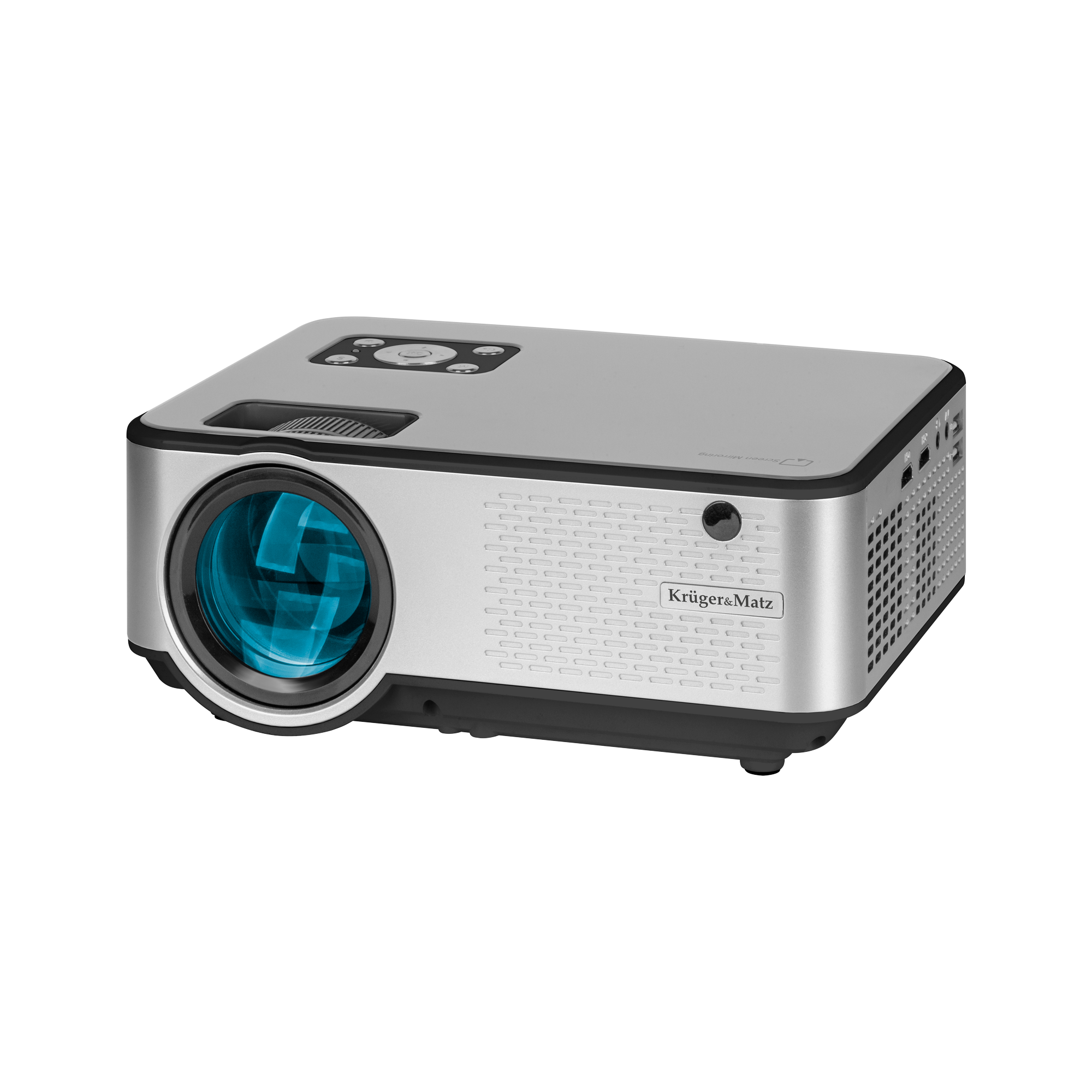 Світлодіодний мультимедійний проектор Kruger & Matz оснащений двома ручками, які дозволяють зручно регулювати налаштування зображення відповідно до ваших вимог. Перший дозволяє фокусуватися вручну, а другий дозволяє виправляти трапецієподібні спотворення.
