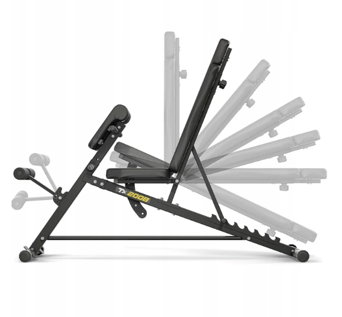 Регульовані елементи – у моделі TX-200B у вашому розпорядженні до 7 різних кутів нахилу спинки . Завдяки цьому регулюванню ви можете адаптувати лаву до різних видів вправ.