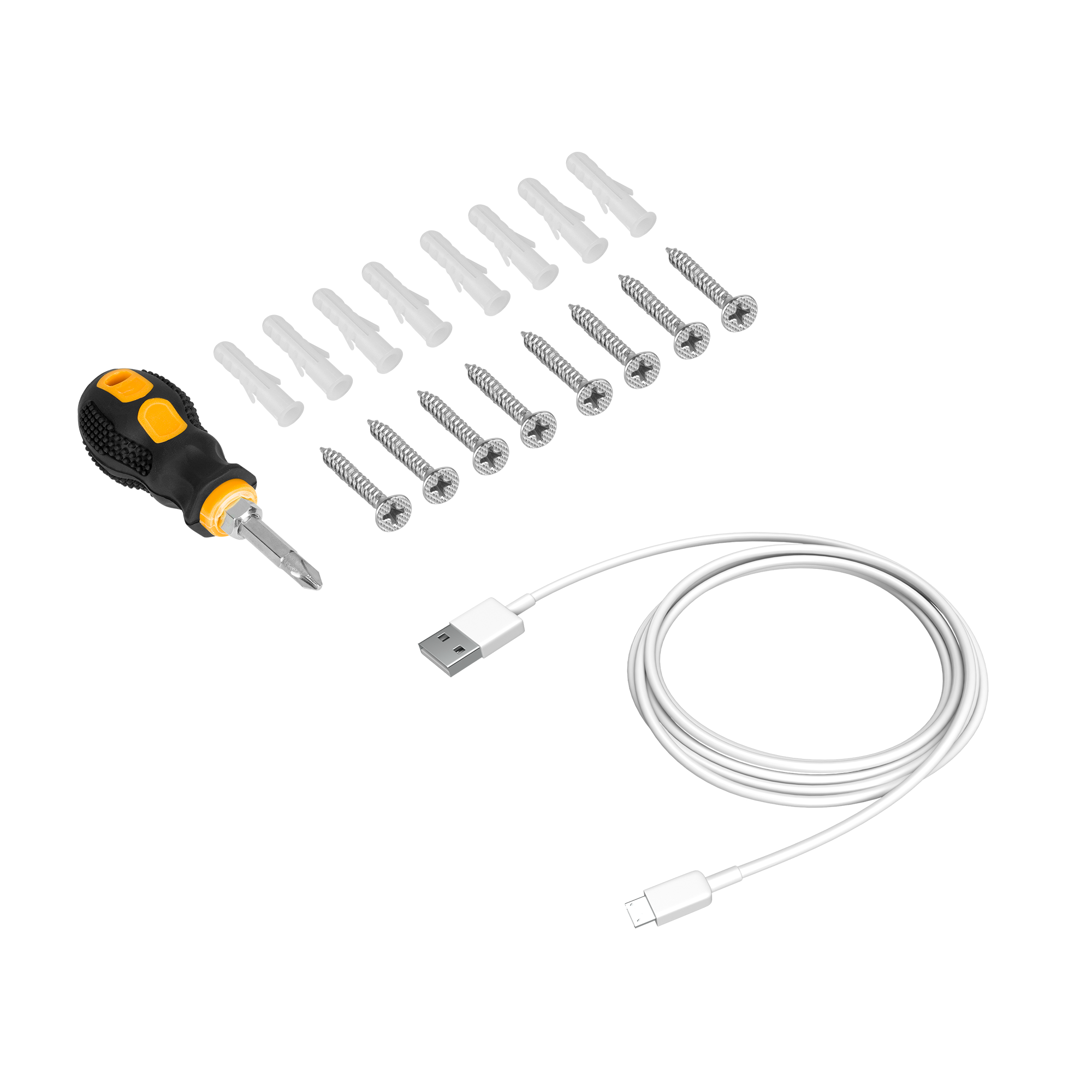 У набір входить: фотоапарат, сонячна панель, тримач сонячної панелі, викрутка, шурупи, дюбелі