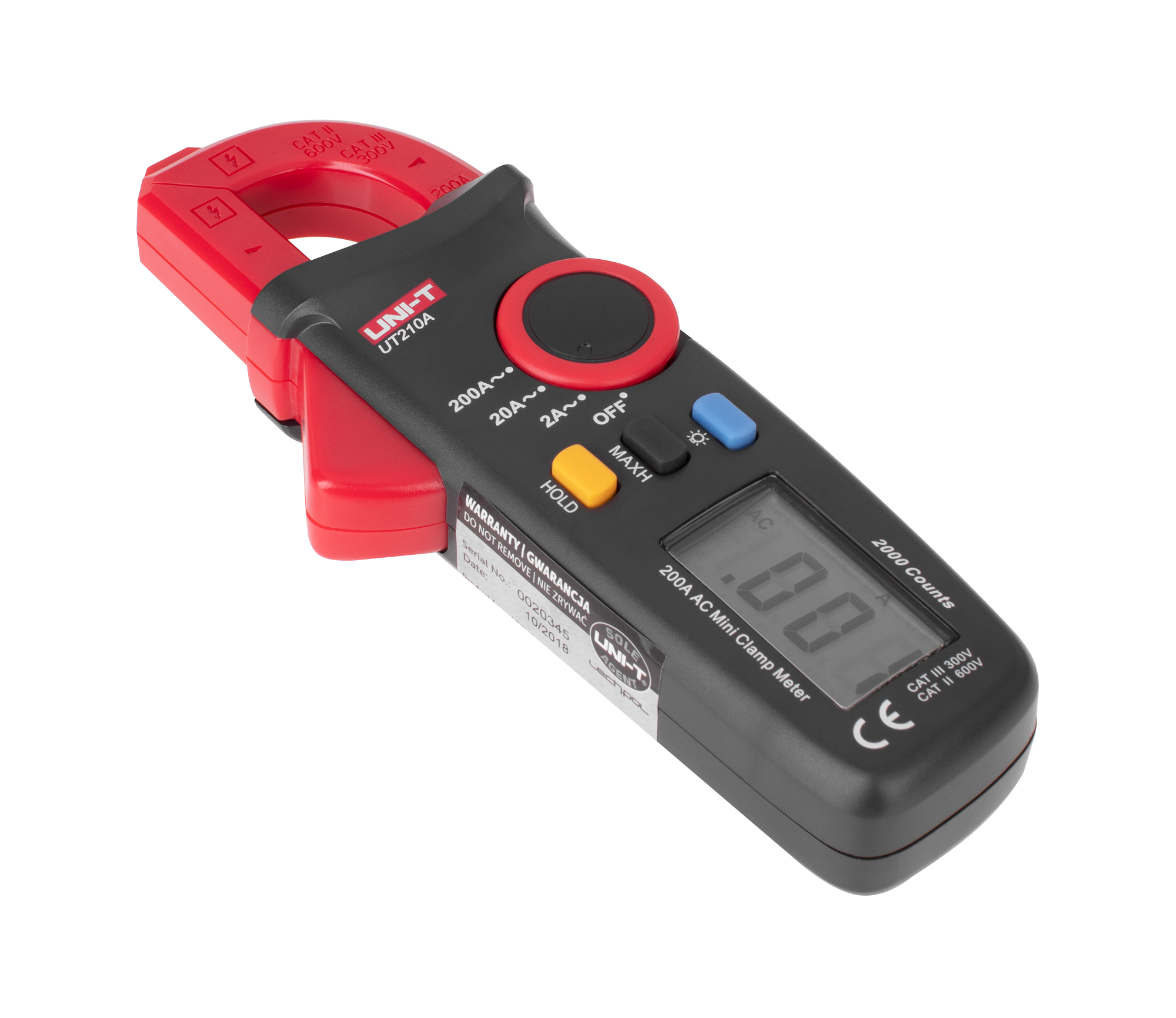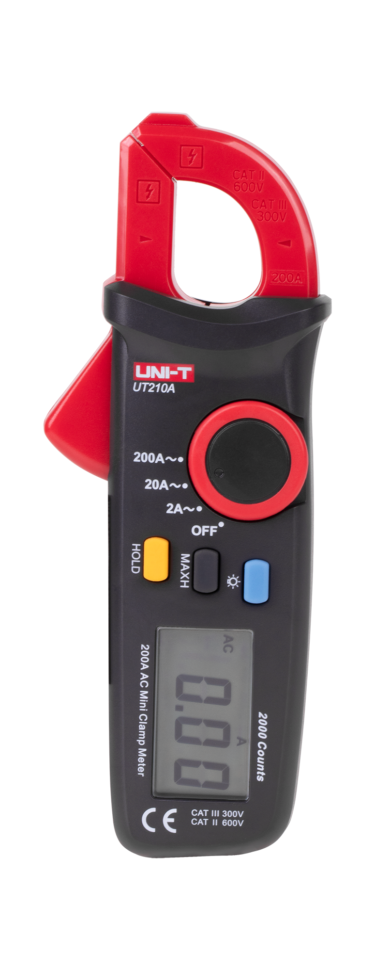 Лічильник UT210A оснащений функцією ручної зміни діапазонів вимірювань і заморожування останнього показання, що сприяє точним вимірюванням. Крім того, пристрій дозволяє фіксувати максимальне значення, що корисно при моніторингу значень пікового струму. РК-екран з підсвічуванням підвищує комфорт роботи в погано освітлених місцях, а функція автоматичного відключення після 15 хвилин бездіяльності та індикатор низького заряду батареї (? 2,5 В) економлять енергію.