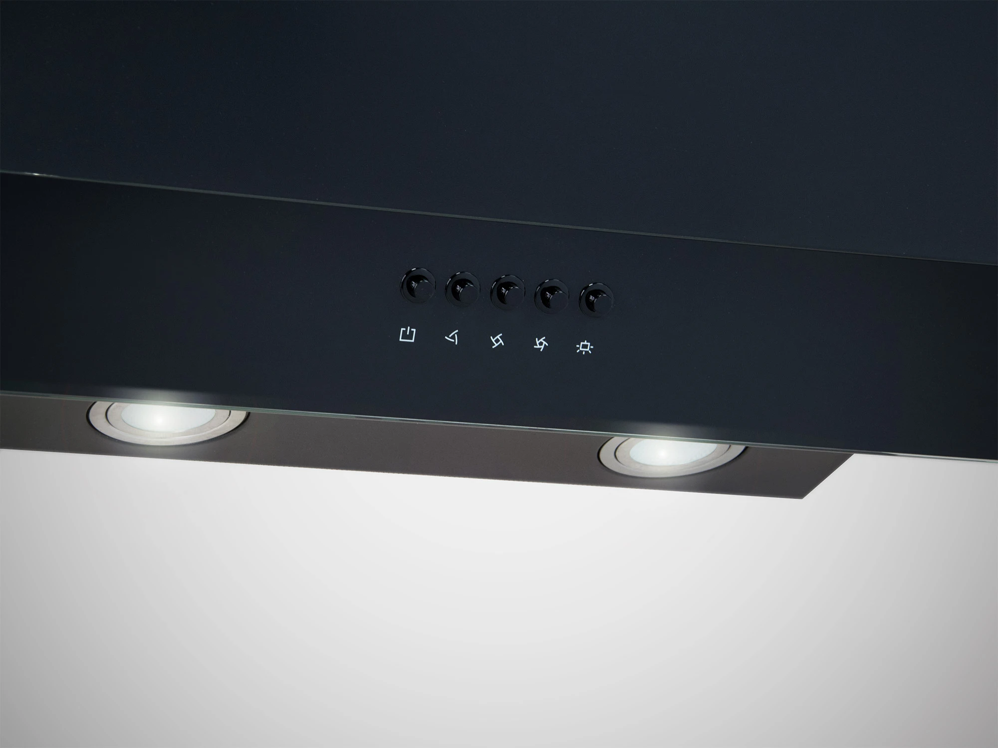 Прості форми створюють поєднання з чорним кольором, яке ідеально впишеться в інтер’єр. Вбудоване енергозберігаюче світлодіодне освітлення дозволить вам скоротити витрати, а три ступені ефективності і два режими роботи – як витяжка, так і поглинач – дозволять налаштувати роботу витяжки під свої потреби.